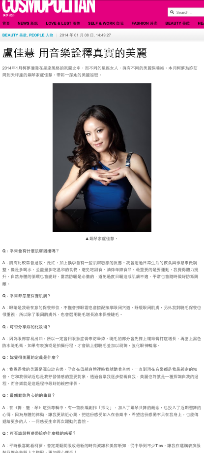 Cosmopolitan Magazine Portraying Beauty Through Music 2014 Jan 柯夢波丹《用音樂詮釋真實的美麗》