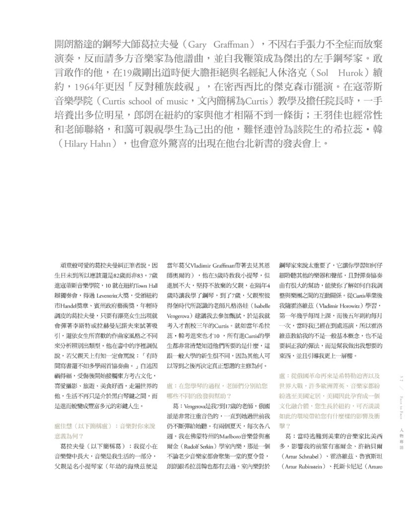 Muzik Magazine Cover Story : GARY GRAFFMAN by Chia-Hui Lu 2011 May 謬斯克 古典樂刊 No.53 封面故事 盧佳慧專訪撰文《一手揮灑出彩鍵人生 左手鋼琴家 蓋瑞.葛拉夫曼》