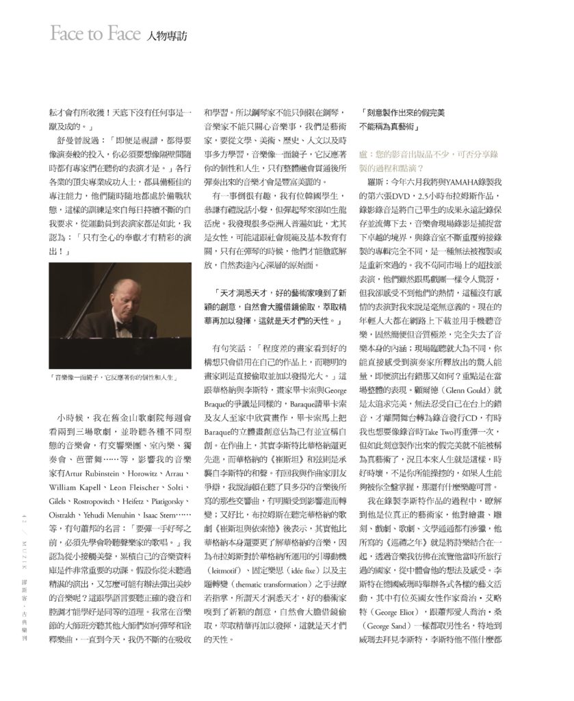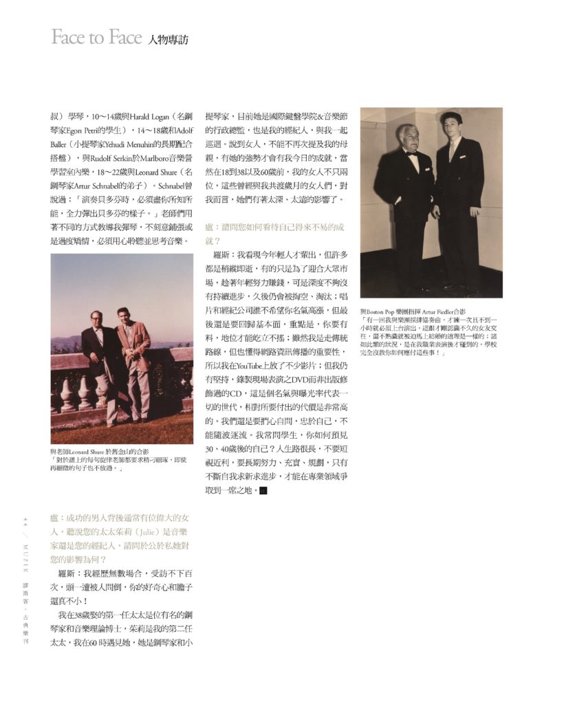 Muzik Magazine Face to Face : JEROME ROSE by Chia-Hui Lu 2011 July 謬斯克 古典樂刊 No.55 人物專訪 盧佳慧撰文《人生70才開始-樂此不疲的鋼琴大師 傑羅姆 羅斯 》