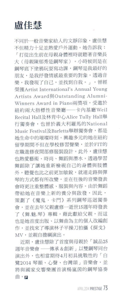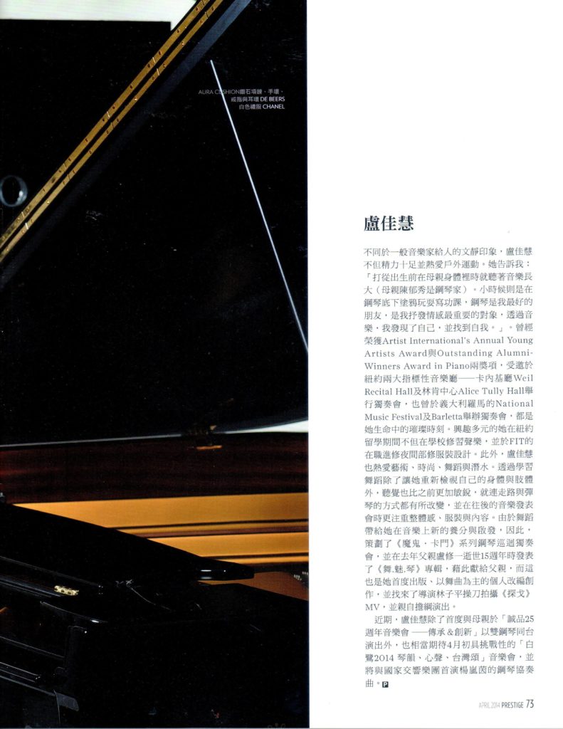 Prestige Magazine “Moment in Light” 2014 April Prestige Taiwan 雜誌《藝術禮讚》盧佳慧