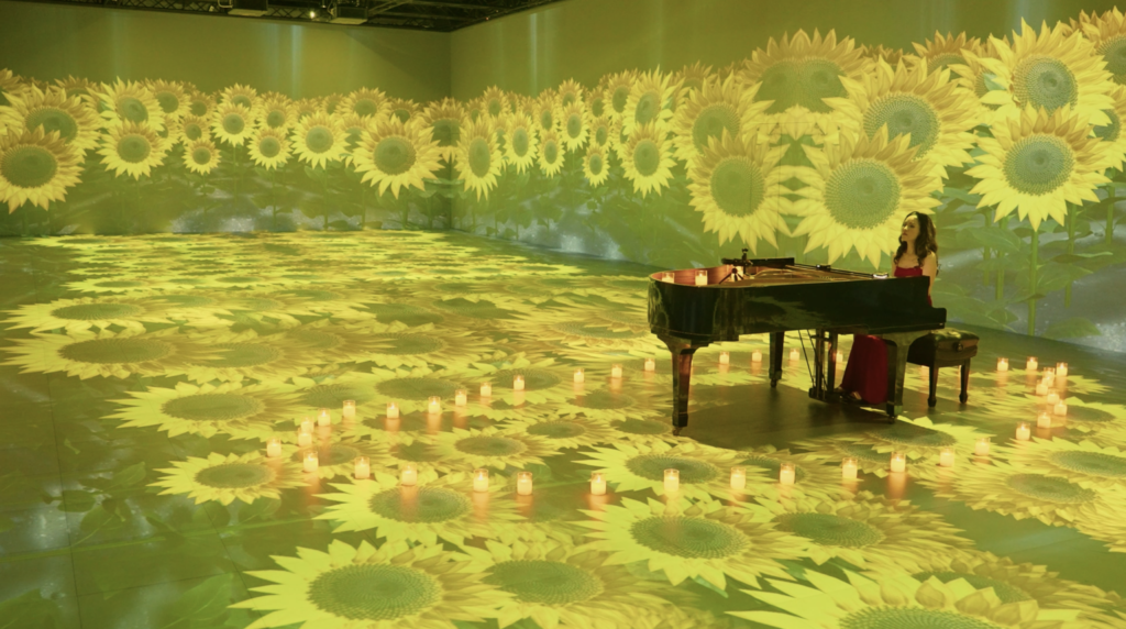SUNFLOWER— A seed of Hope sprouts from darkness. The Sunflower weaves a symbolic journey. We witness the birth of existence, the fight for freedom, and the enduring power of hope. The experience invites us to reflect on the cyclical nature of creation and destruction, the power of faith and ideals, and the enduring spirit of hope that allows us to leave a positive mark in the world.